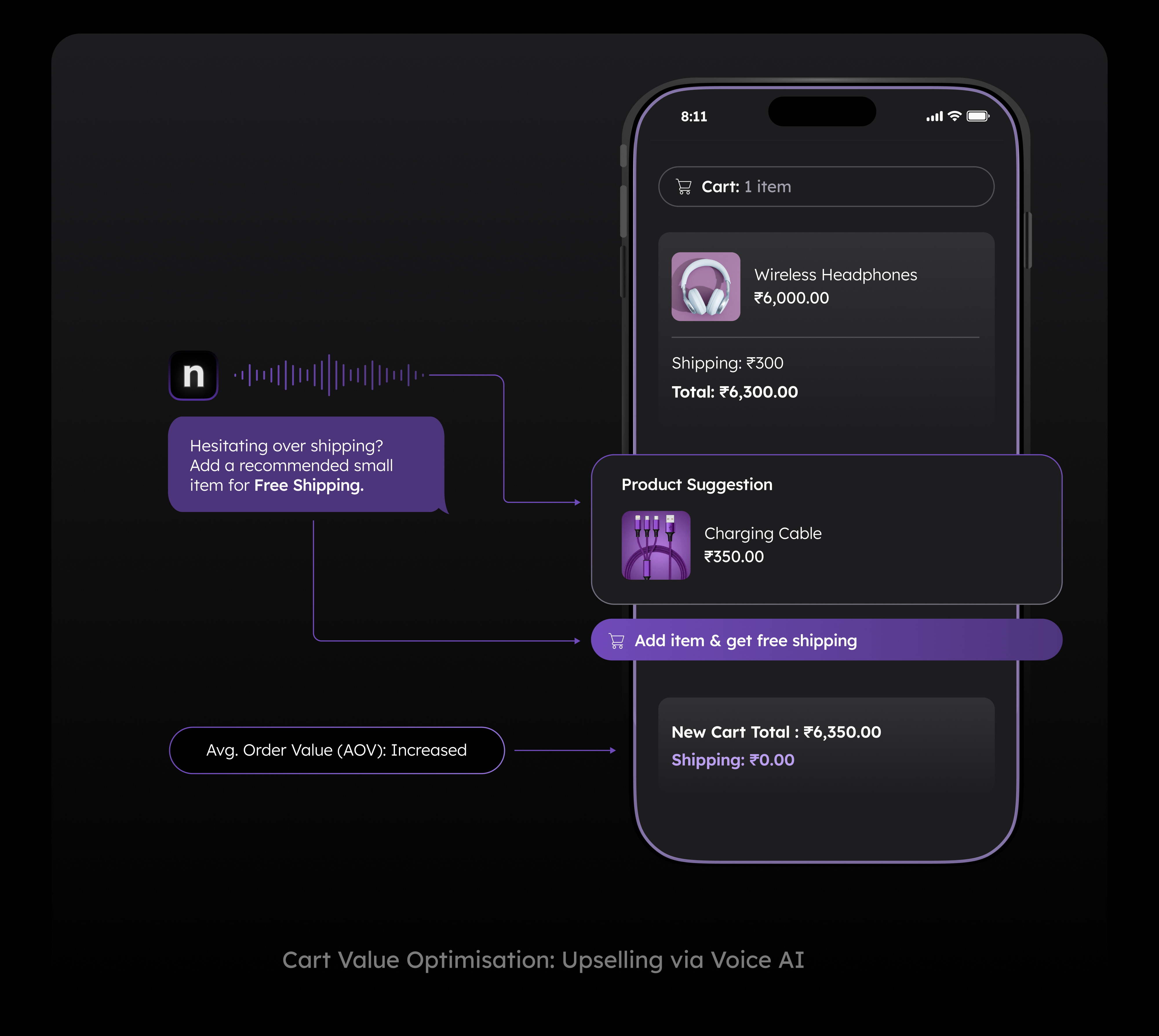 Using Dynamic Discount Triggers, the AI can evaluate the cart value in real time. If it is a high-margin item, it can offer a bespoke incentive or a specific policy reassurance right there on the call. This transforms a "No" into a "Yes" through actual conversation.